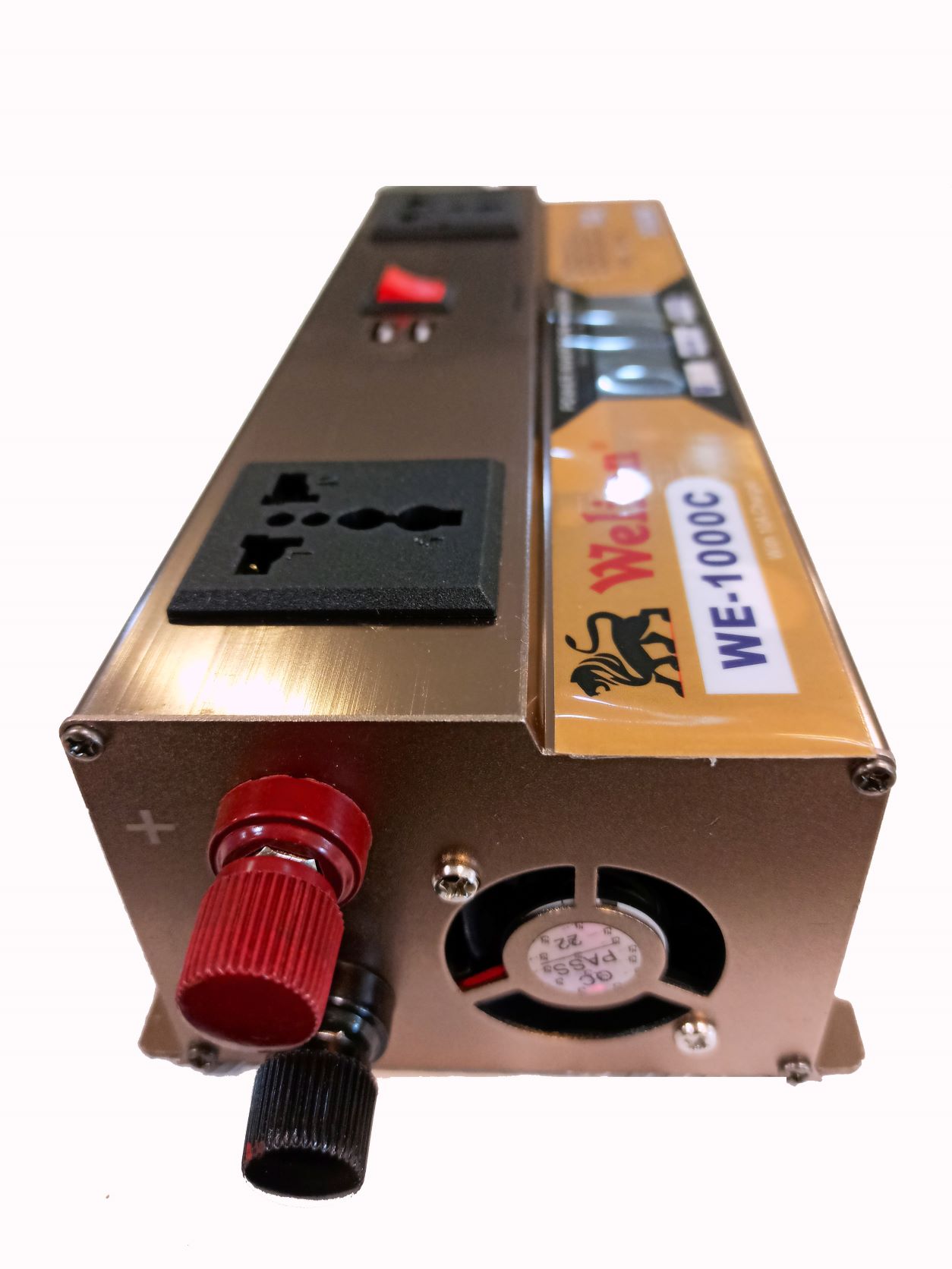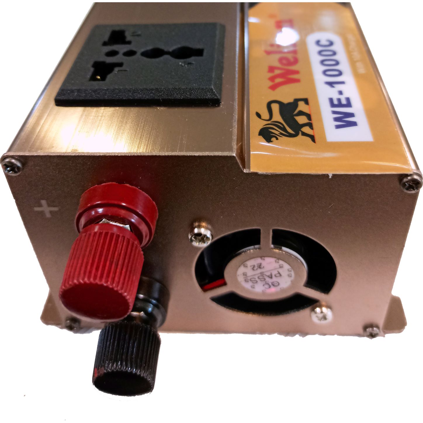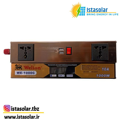 گیره های قرمز و مشکی را به ترتیب به سرهای مثبت و منفی باتری و همچنین به سرهای مثبت و منفی ورودی 12 ولت اینورتر وصل می کنیم. با روشن کردن کلید on/off اینورتر، خروجی 220 ولت در دسترس خواهد بود و چراغ LED سبز رنگ روشن خواهد شد.